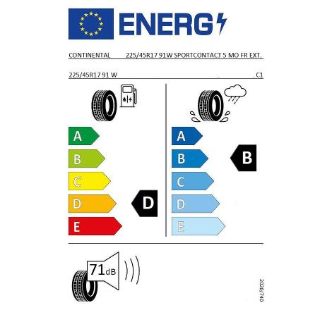 CONTINENTAL 225/45R17 91W SPORTCONTACT 5 MO FR EXT. 225/45R17 91W RUNFLAT